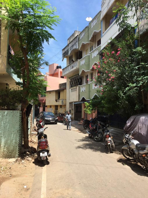The people of Kerala speak one of the most complicated languages known. Kerala is adjacent to the state, Tamil Nadu, in which Channai is located so there are many here who speak this very complicated, interesting language. It was so cool to be in their presence and hear them speak and sing in their language. As I wrote earlier, it always speaks to me of the amazing omniscience of God that He has no language barriers. The building was really quite large compared to the previous edit building we had visited. There were probably about 35 folks there most of whom were men. All were gracious and very, very glad to have us there yet also very intrigued by us. Charlie didn’t attend as he wasn’t feeling so well. Laura and I sang again and shared a number of songs with them. We encouraged them as much as we could and, of course, took much encouragement from them. The most interesting aspect of this gathering was the fact that the building was located no more than 3 feet from the major road that went through the neighborhood. Major as in the only road. It was a small, dirt road teeming with people, cars, scooters and trucks. Since every driver uses the horn as much as the steering wheel it made for some interesting assembly time singing over the rumbling and honking of the traffic. It was quite unusual and definitely illustrated these believer’s determination to gather and praise God. Just another blessing on our way.